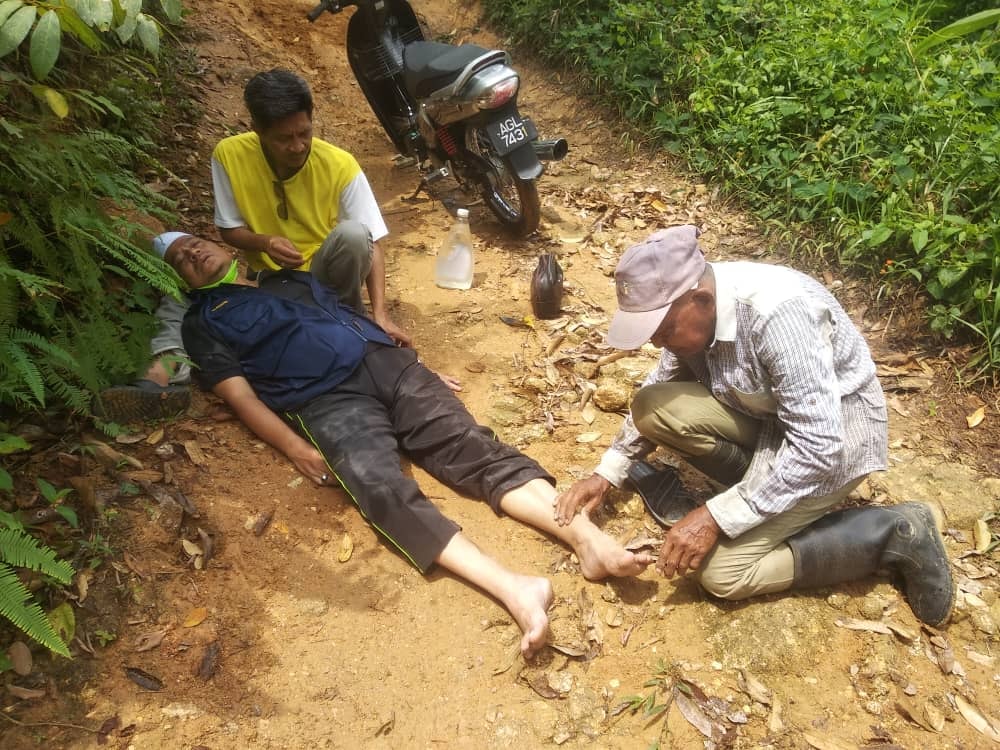 Keadaan itu mengakibatkan Mohd Najmuddin terpaksa dibawa turun dengan menaiki pacuan empat roda dan dihantar ke klinik swasta bagi mendapatkan rawatan.
