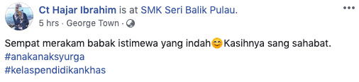 Walau bagaimanapun, menerusi perkongsian daripada pengguna Facebook dikenali sebagai Ct Hajar Ibrahim, dia telah memuat naik beberapa foto yang begitu menyentuh hati.