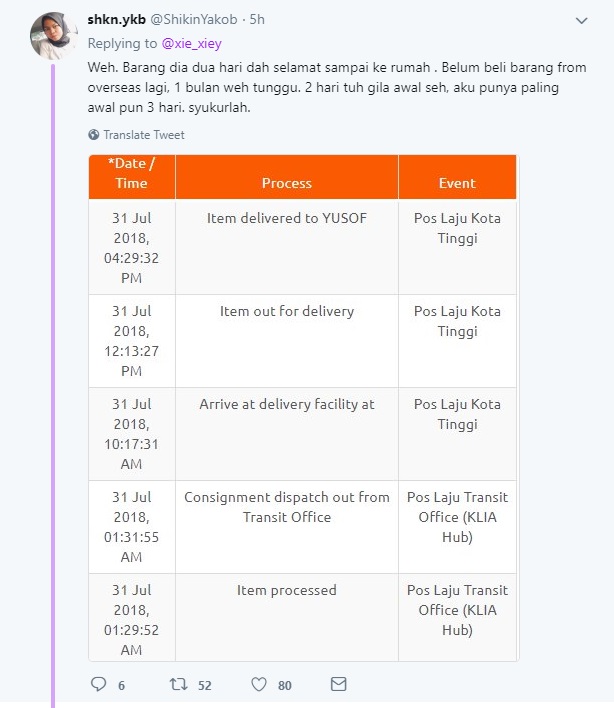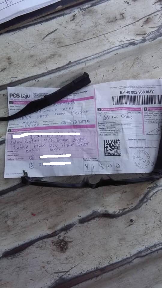 Tidak ada otak ke sipelaku sanggup berbuat demikian? Sedangkan pengirim hantar barang pada 30 Julai 2018 dan barang diserah kepada penerima pada 31 Julai 2018. Adakah itu dikira lambat?