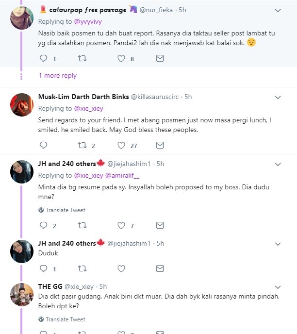 Rata-rata netizen mempersoalkan sipelaku berkenaan kerana tidak wajar berbuat demikian berikutan andainya berlaku kelewatan bukan kerana salah posmen tapi mungkin daripada seller yang tidak jujur dan proses penghantaran.