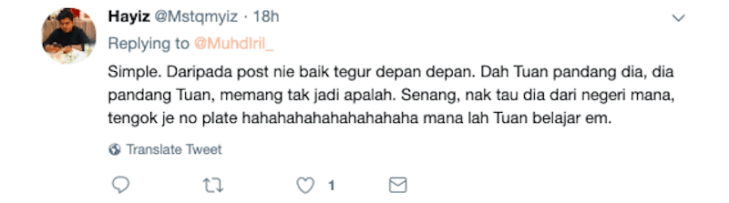“Tandas 5 langkah je! Paling mengecewakan, no plat kereta dari negeri yang biasa buat hal,” tulisnya.