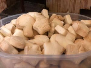 Biskut orang lama ini memerlukan tenaga yang banyak dan kesabaran yang tinggi kerana tepung ubi kayu diuli tanpa mentega atau minyak.