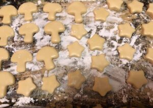 Ambil seketul doh, gelek dengan penggelek dan tekap dengan acuan mengikut bentuk kesukaan masing-masing.