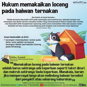 Menurut Mufti Wilayah Persekutuan, Dr. Zulkifli Mohamad Al-Bakri, memakaikan loceng pada haiwan ternakan adalah harus sekiranya ada keperluan seperti takut dicuri atau sebagainya. Makruh sekiranya tiada keperluan.