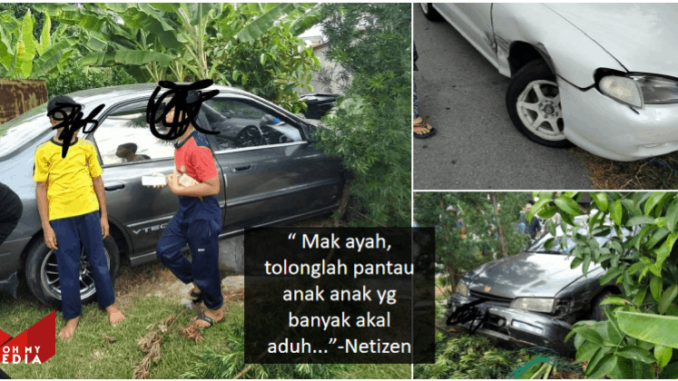 Orang kata budak-budak zaman sekarang ni memang terlebih berani! Tak padan dengan bawah umur, bukan sahaja motosikal malah mahu cuba untuk memandu kereta pula.