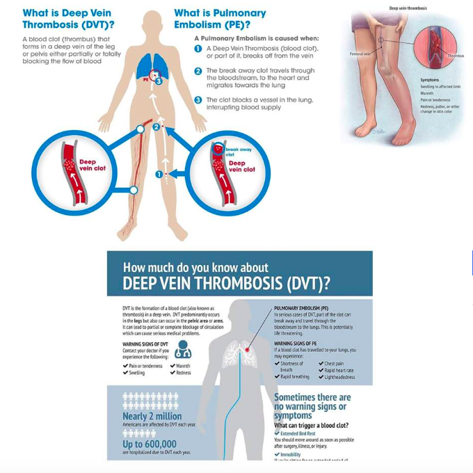 Lebih serius lagi jika gejala sebelah kaki itu diikuti dengan SAKIT DADA dan JANTUNG BERDEBAR, pada saat ini berkemungkinan Pulmonary Embolism sudah berlaku. Jika DVT dapat dikesan pada peringkat awal, ianya boleh diubati dan Pulmonary Embolism dapat dicegah. Puan M mungkin dapat diselamatkan jika beliau dibawa berjumpa dengan doktor semasa mengalami lenguh sebelah kaki, 2 hari sebelum mengalami sakit dada dan pengsan. Malangnya darah beku yang banyak sudah pergi ke paru-paru Puan M dan pada ketika itu jantung dan paru-parunya sudah gagal berfungsi. Semoga tragedi ini tidak berulang kepada ibu2 yang lain. Pulmonary embolism adalah penyebab kematian ibu yang ketiga paling utama di Malaysia.