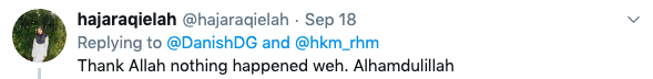 Namun begitu, mereka berasa lega apabila mendapati ibu Danish tidak mengalami sebarang kecederaan dan meminta agar mereka sekeluarga lebih berhati-hati.