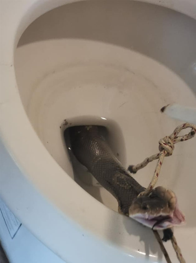 Berdasarkan gambar, Adisak cuba menangkap ular tersebut dan mengeluarkannya dari mangkuk tandas. Namun ular itu melawan ketika cuba ditarik keluar.