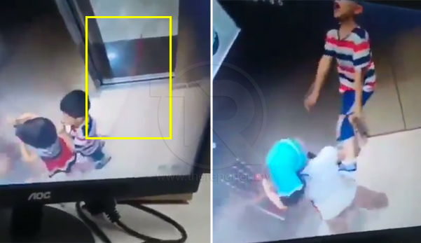 Dalam kejadian yang tidak dinyatakan lokasi dan tarikh itu menunjukkan seorang ibu bersama dengan dua anaknya masuk ke dalam lif tersebut.
