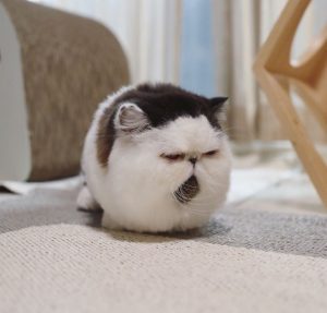 Zuu, kucing peliharaan dari Korea, memiliki mimik wajah yang garang dengan bulu hitam pada bawah bibir membentuk janggut.