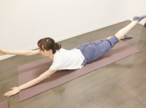 Posisikan tubuh dalam keadaan menelangkup di lantai. Kemudian regangkan kedua tangan ke depan sejauh mungkin.