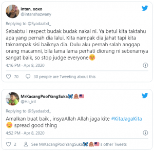 Tinjauan di ruangan reply mendapati rata-rata menjadikan pesanan PU Azman itu sebagai peringatan buat diri mereka sendiri dan tidak menjadikan tiket pahala mengumpat itu untuk terus berbuat jahat.