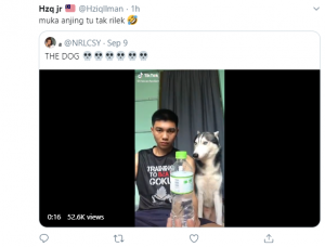 ”Sakit perut gelak. Muka anjing tu tak boleh blah“, kata salah seorang warga netizen. Posting itu telah meraih perhatian ramai sehingga menerima sebanyak 50.9 ribu tontonan umum menerusi laman akaun Twitter terbabit.