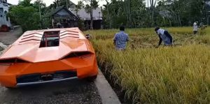 Seakan-akan model asli, replika Lamborghini petani ini turut memudahkan beliau untuk membawa hasil padi dari satu lokasi ke satu lokasi yang lain.