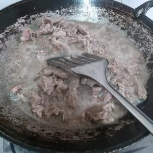 3. Air akan keluar sendiri dari daging. Guna api yang kuat.