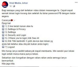 Justeru, adalah dinasihatkan agar tidak menekan sembarangan pautan di mana-mana laman sosial, dan anda digalakkan untuk menukar password serta menggunakan “Two Factor Authentication” sebagai langkah keselamatan.
