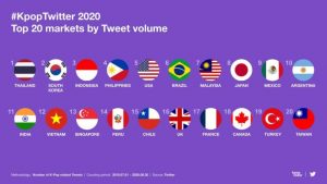 Menerusi data yang dikeluarkan oleh Twitter, dengan kerjasama K-Pop Radar, Thailand menduduki tangga pertama, diikuti Korea Selatan, Indonesia, Filipina, Amerika Syarikat, dan Brazil.