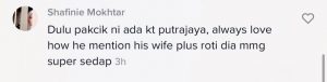 Difahamkan, pak cik ini menjual lebih daripada 22 jenis roti yang bukan sahaja gebu tetapi sedap. Berikutan perkongsian itu, rata-rata netizen berasa kagum dengan pak cik ini. Bukan itu sahaja, para netizen yang pernah mencuba roti yang dijual pak cik ini juga memuji roti-roti buatan isterinya kerana tidak kedekut, gebu dan paling utama sedap.