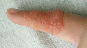 Masalah ini berterusan dengan kehadiran gelembung air yang kecil, namun ia sangat menggatalkan. Lama kelamaan, gelembung air itu pecah lalu menjadi kering, mengakibatkan kulit merekah dan merebak ke seluruh tapak tangan.