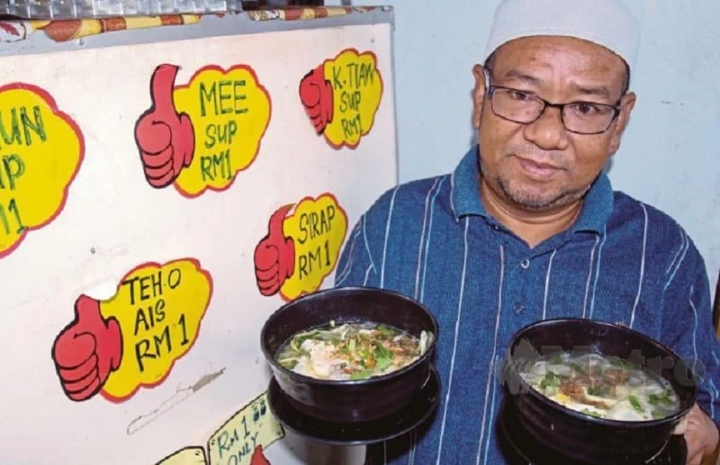 Itu dilakukan Zailani Ismail yang menjual mi, bihun, kuetiau sup dan bubur nasi dengan harga RM1 semangkuk.