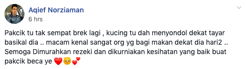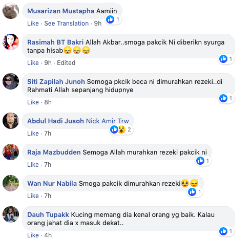 Oleh sebab itu, menerusi ruangan komen posting yang dibuat, beberapa warganet telah menzahirkan rasa terharu atas tindakan pengayuh beca itu dan mendoakan agar rezekinya terus dimurahkan atas sebab perkara murni yang dilakukan terhadap haiwan kesayangan Rasulullah S.A.W.