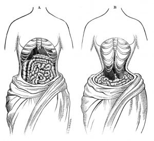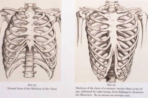 Pemakaian korset juga boleh mengakibatkan tulang rusuk dihimpit dan kapasiti paru-paru berkurangan sebanyak 30-60%. Untuk jangka masa panjang akan berlaku radang di dalam paru-paru yang boleh menyebabkan masalah pernafasan kronik.