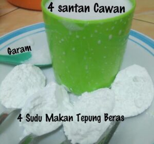 4. Ambil gula dan kisar. Kemudian letak gula halus satu sudu teh dalam bekas.