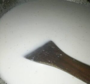 3. Campur semua bahan dalam kuali. Masak dan kacau sampai pekat.