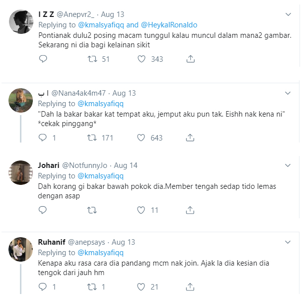 “Port dekat area kayak, bawah pokok. Dia cekak pinggang gais hahahaha!” kata Din.