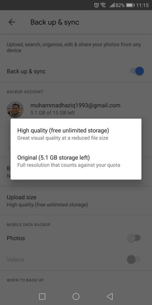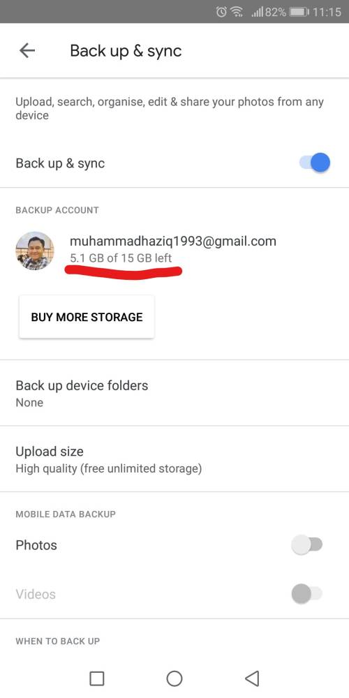 - Sekiranya kita pilih untuk upload High Quality image, storage yang disediakan oleh Google adalah unlimited. So, beribu-ribu gambar yang dibackup pun tiada masalah