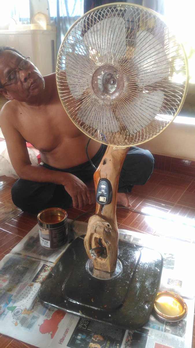 Pakcik ini sememangnya lain dari yang lain dan hasil kerja tangannya memang boleh dibanggakan dan boleh diketengahkan. Siapa sangka kipas angin kayu dibuat dengan menggunakan suis daripada rice cooker. Hebat kan?