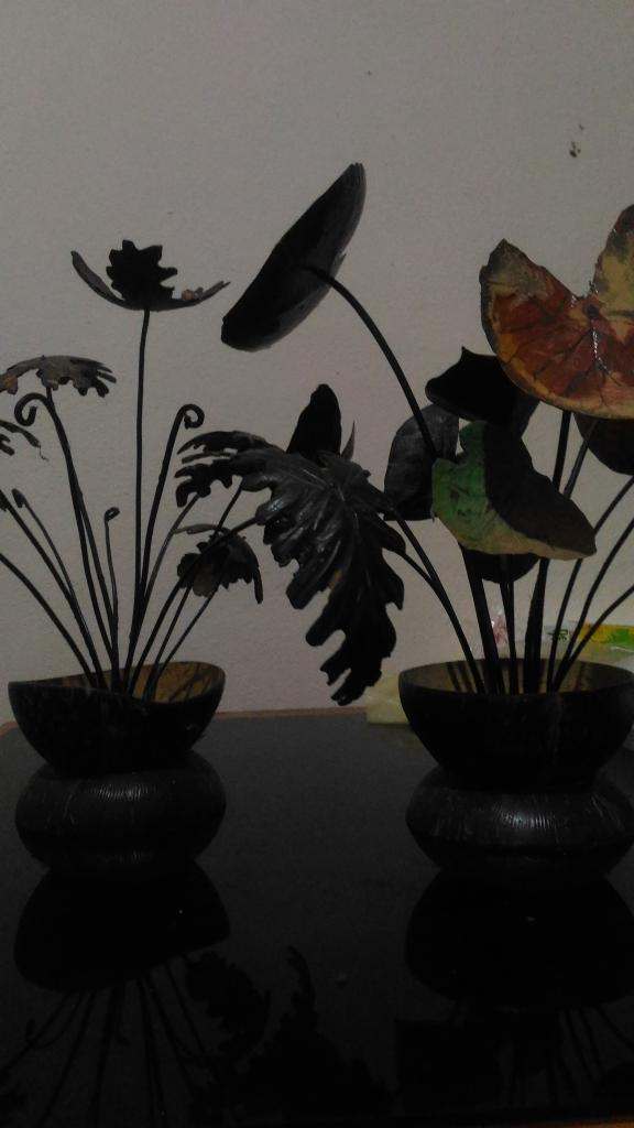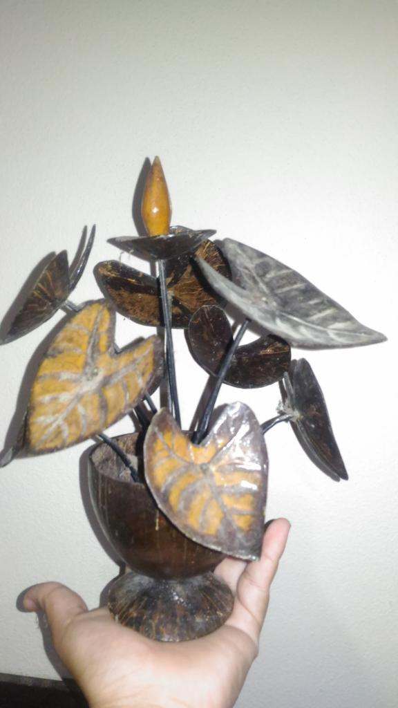 “Pa tiba-tiba gila buat bunga keladi daripada tempurung kelapa. Dia ambil tempurung kat kedai santan, siap bagi kat pemilik kedai sebagai hadiah.”