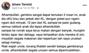 Dalam perkongsian sumber lagi, lelaki Cina itu mempunyai seorang anak kelainan upaya (OKU) yang juga kesempitan wang di Kuala Lumpur dan tersangkut disana.