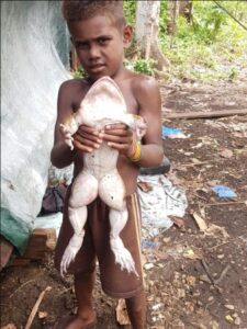 Seorang lelaki yang dikenali sebagai Jimmy Hugo, 35 menemui katak gergasi itu ketika sedang memburu babi liar di pinggiran Honiara. Menurut Jimmy yang juga merupakan pemilik kilang kayu, dia terperanjat besar apabila melihat katak tersebut di depan matanya.