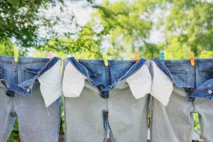 Ketika menyidai pastikan bahagian atas jeans berada dibahagian bawah dan hujung kaki seluar dia bahagian atas bagi mengelakkan jeans anda mengembang – sebaiknya jemur di bawah sinaran matahari.