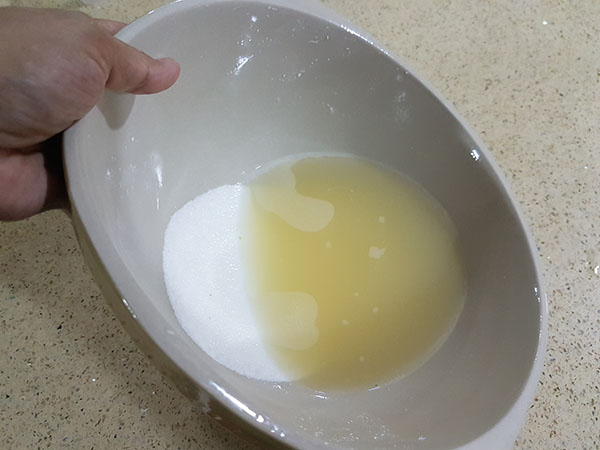 - Kemudian masukkan air lemon dan madu, kacau hingga sebati dan jadi krim.