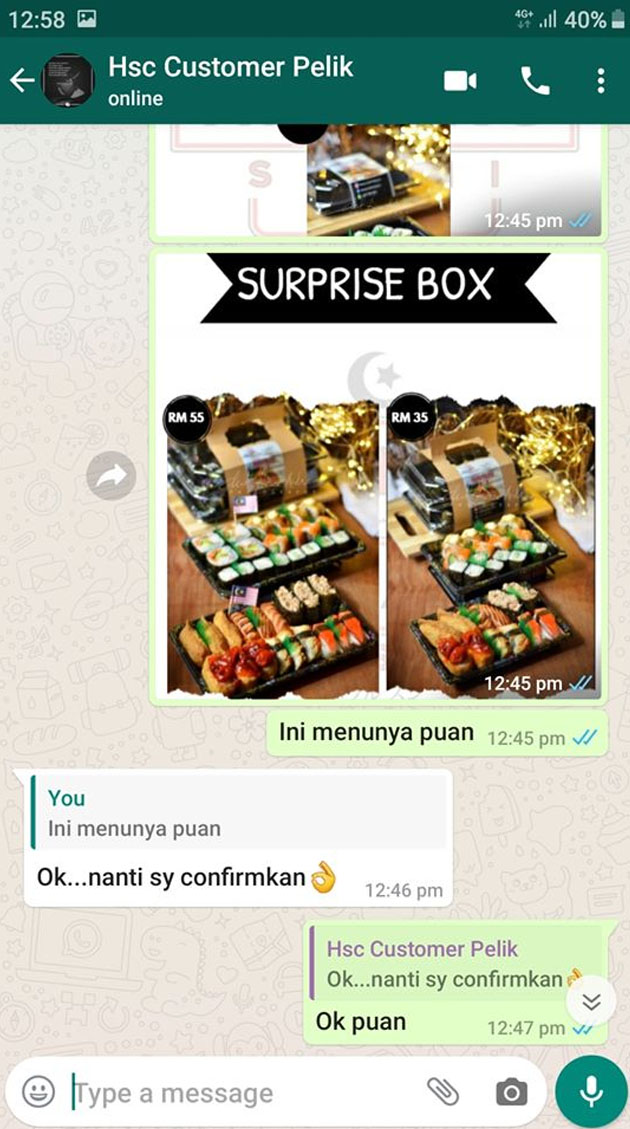 “Tak kira umur berapa pun yang mesej aku nak order sushi, aku akan berbahasakan puan/tuan, tak kira umur dan pangkat darjat.