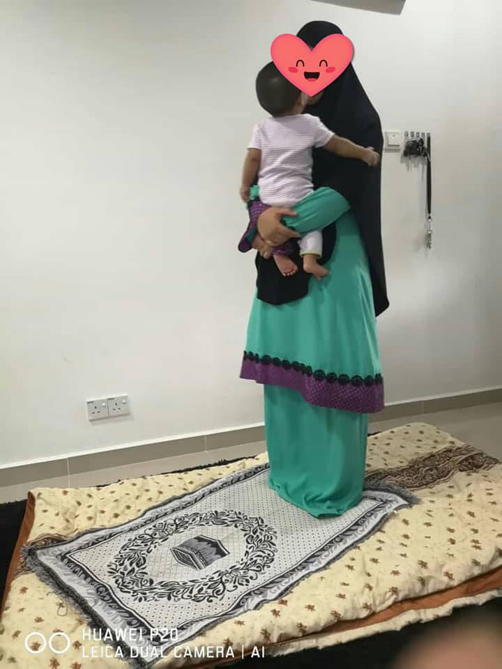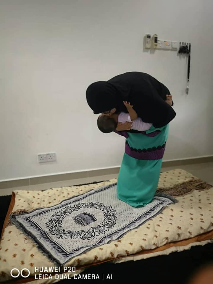 Ini cara ibu dukung bayinya ketika berdiri dalam solat.