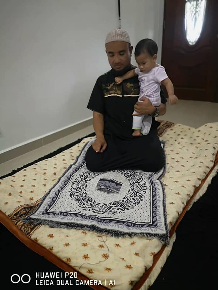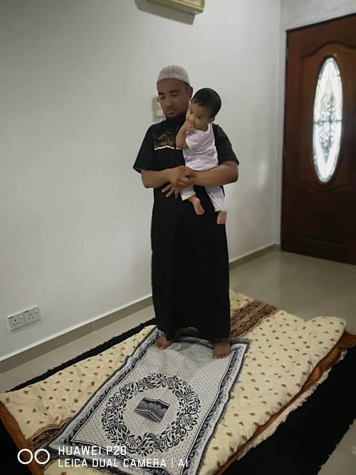 Contoh bapa solat dengan mendukung bayi ketika takbir.