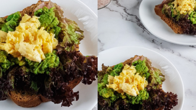 5. Kemudian, letakkan pula scrambled egg. Siap untuk dimakan!