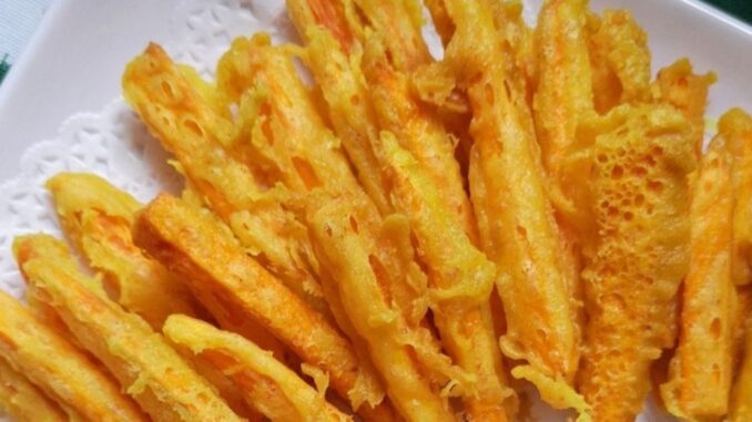 6.Bila keledek sudah garing keemasan, angkat, toskan dan sedia untuk dihidang bersama Sambal Kicap.
