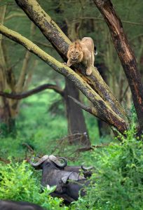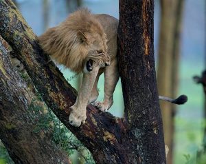 Beberapa foto yang diambil oleh jurufoto di Nakuru National Park, Kenya, telah menarik perhatian ramai dengan menunjukkan seekor singa ketakutan diatas sebuah pohon pokok.