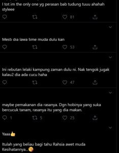 Selain tertarik dengan keunikan bahasa asli berkenaan, nampaknya netizen mula menyedari kecantikan awet muda yang dimiliki oleh warga emas ini. Walaupun umurnya sudah 92 tahun, namun dia masih kelihatan sihat tubuh badan dan mampu memberikan senyuman manis semasa berkongsi cerita hidupnya.