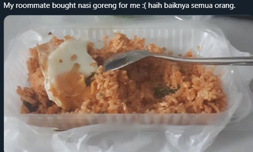“ Tak sangka pula, dia begitu prihatin sehingga sanggup berhenti di sebuah kedai dan membungkuskan saya makanan.