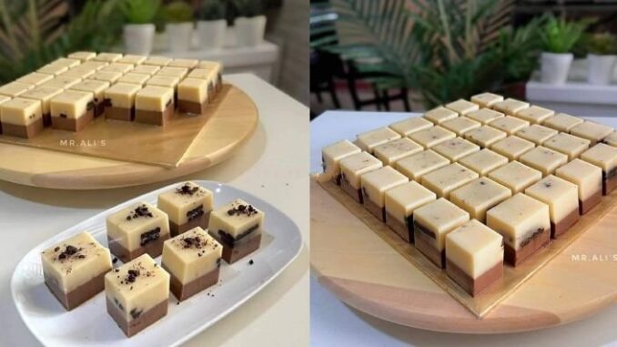 6. Tuangkan lapisan oreo tadi secara perlahan-lahan. Biarkan di luar selama 40 minit baru sejukkan dalam peti ais selama 3 hingga 4 jam.