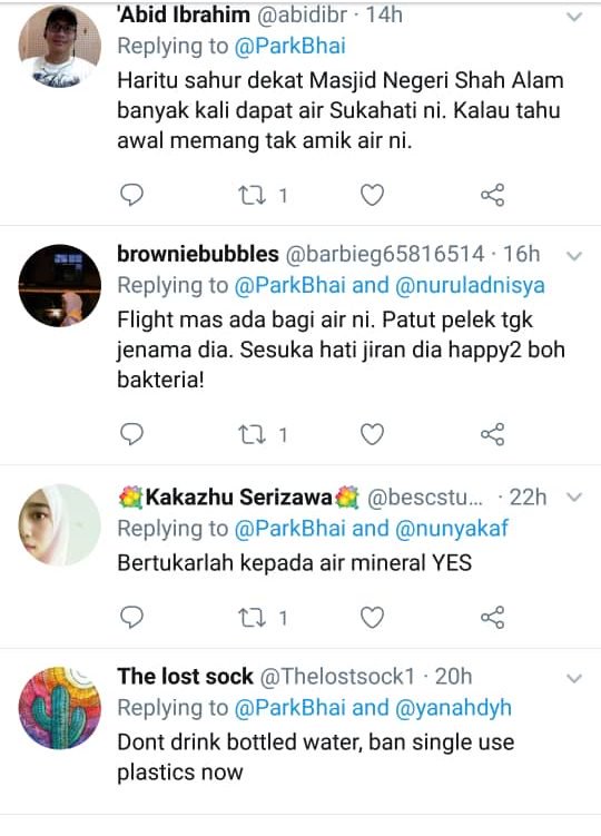 Susulan itu, pengguna di Malaysia dinasihatkan untuk berhati-hati sewaktu membeli air minuman atau mineral bagi mengelakkan perkara yang lebih buruk berlaku.