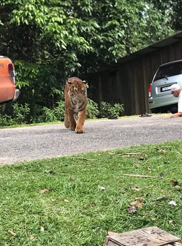 Harimau yang sama itu turut muncul berhampiran rumah seorang wanita yang terdengar bunyi haiwan itu mengaum, lalu melarikan diri ke rumah jiran kerana bimbang diserang.