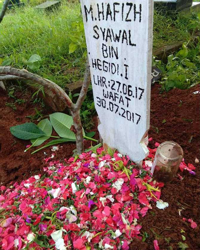 Indah mengenang saat-saat terakhir melihat bayinya, Hafizh yang disifatkannya masih mampu tersenyum meskipun nafas tersekat-sekat.
