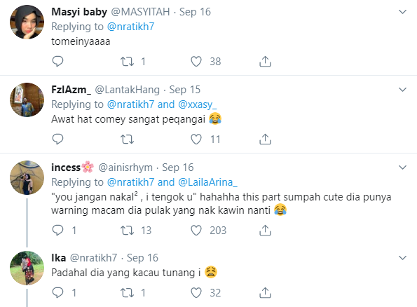 “You jangan nakal² , i tengok u” hahahha this part sumpah cute dia punya warning macam dia pulak yang nak kawin nanti 😂